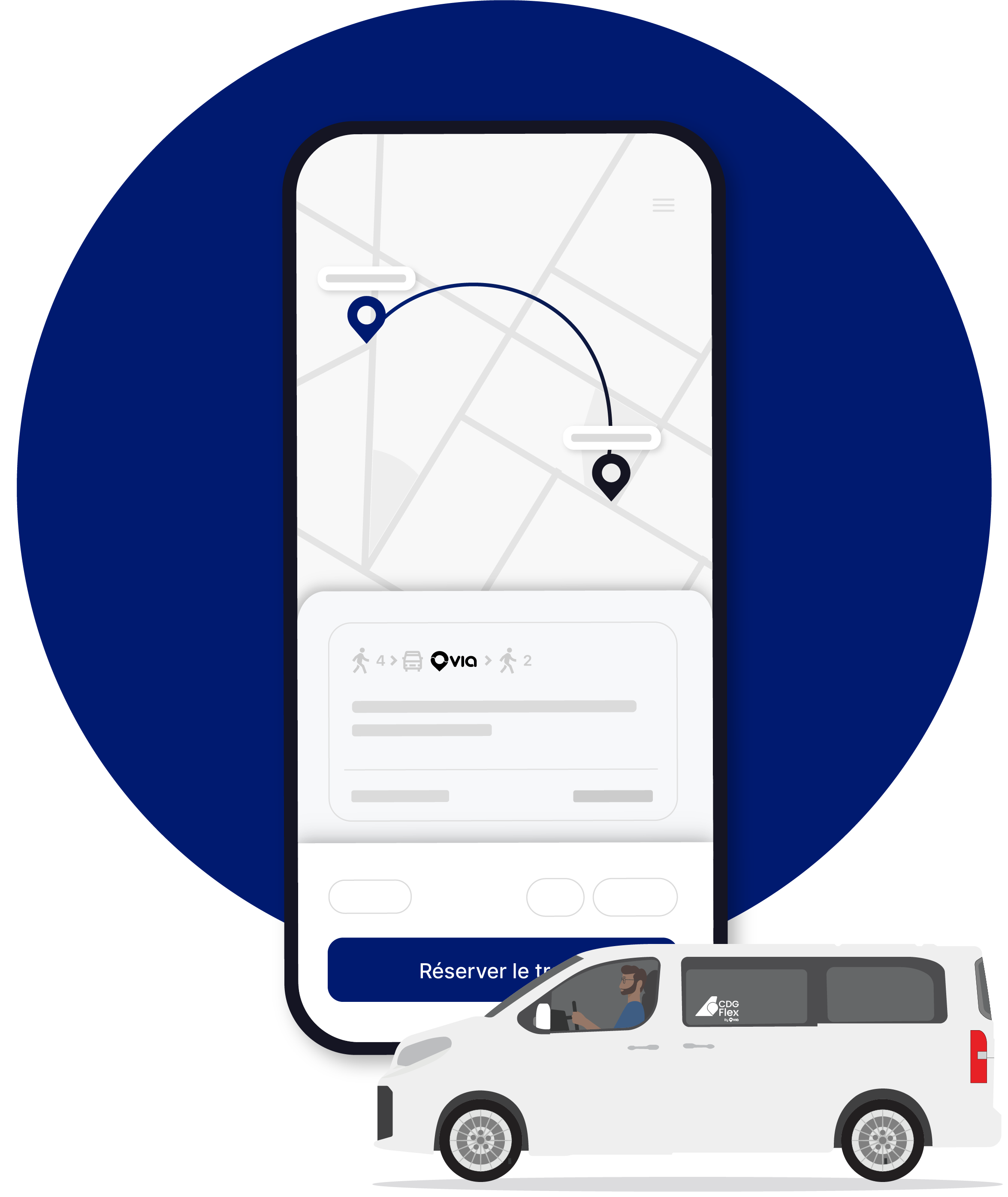 CDG Flex est un service de transport à la demande, gratuit et entièrement dédié aux salariés de la zone aéroportuaire.. Réservez une course depuis votre arrêt de transport en commun, un parking ou tout autre point situé dans la zone de service, et rejoignez votre lieu de travail en toute simplicité. Suivez l’arrivée de votre véhicule dans l’application CDG Flex et consultez votre heure d’arrivée en temps réel.